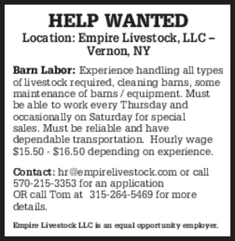 GENERAL CONTRACTOR looking to hire. Contruction Worker, General Laborer, Masonry Worker, Carpenter, Equipment Operator. CDL License a plus but not required. Experience helpful but also not required. Pay based on experience. Call 607-965-8413.