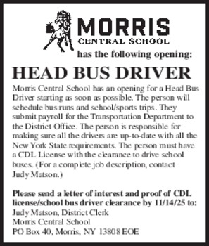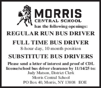 Town of German is accepting applications for a Motor Equipment Operator.Qualifications A current CDL-B or CDL-A License is required throughout employment and a driving record acceptable to the employing Municipality"s Insurance Carrier. Salary: Competitive> Please contact Town Clerk Ellen Maroney at 607 656-4493 for an application.