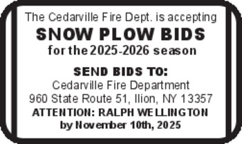 NEED SOMEONE to plow driveway in Cherry Valley, 607-435-4768.