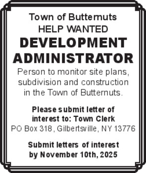 Looking for home health aid for elderly woman in Richfield Springs. Assisting with meals, toileting, ambulation, laundry, cleaning, etc. Will be paid through CDPAP after several requirements have been met. Can be part-time or full-time. Call Marilyn at 607-282-6217.