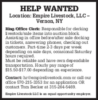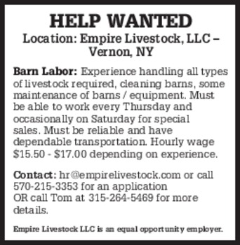 PART TIME DAIRY Farm Help wanted. Morning and or evening milkings. Experience a plus but not necessary. We are willing to train the right individual. Call or text with name and information. 607-434-6440