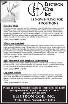 DCMO BOCES IS HIRING NON INSTRUC-TIONAL SUPPORT STAFF IN THE FOLLOWING POSITIONS: CDL A and CDL B Trainer/Instructor. Accountant with experience in AP and payroll, public school experience preferred, to oversee the DCMO Central Business Office serving multiple districts. HVAC Specialist ("Building Maintenance Mechanic II" civil service title) primarily in Norwich (full time) Payroll Specialist ("Principal Account Clerk" or "Senior Account Clerk" titles) in Norwich (full time) Substitute Couriers, Custodial Workers, Food Service Helpers, or Laborers in Norwich or Masonville. It's a great time to work at DCMO BOCES! Applications found at: https://www.dcmoboces.com/o/dcmo-boces/page/current-vacancies. Send completion to recruiting@dcmoboces.com or mail to DCMO BOCES 142 Whaupaunaucau Rd, Norwich NY 13815