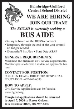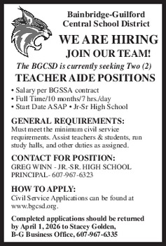 SCHOOL BOARD VACANCY The following vacancy is to be filled on the Board of Education: (1) 3-year term (Last incumbent) Brad Smith Petitions nominating a candidate for the office of member of the Board of Education are available by contacting Marilyn Shaw, District Clerk, at (315) 858-0610 Ext. 1101 or emailing mshaw@richfieldcsd.org. The petitions must contain at least 25 signatures of qualified voters in the district and must be returned to the District Clerk no later than 5:00 p.m. on Monday, April 20, 2026.