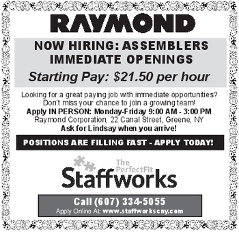 NOW HIRING: Full-time driver/laborer, for Elite Fencing LLC company, starting rates at $25 per hour, $50,000-$60,000 yearly income. Call Mel for interview 518-867-1780.