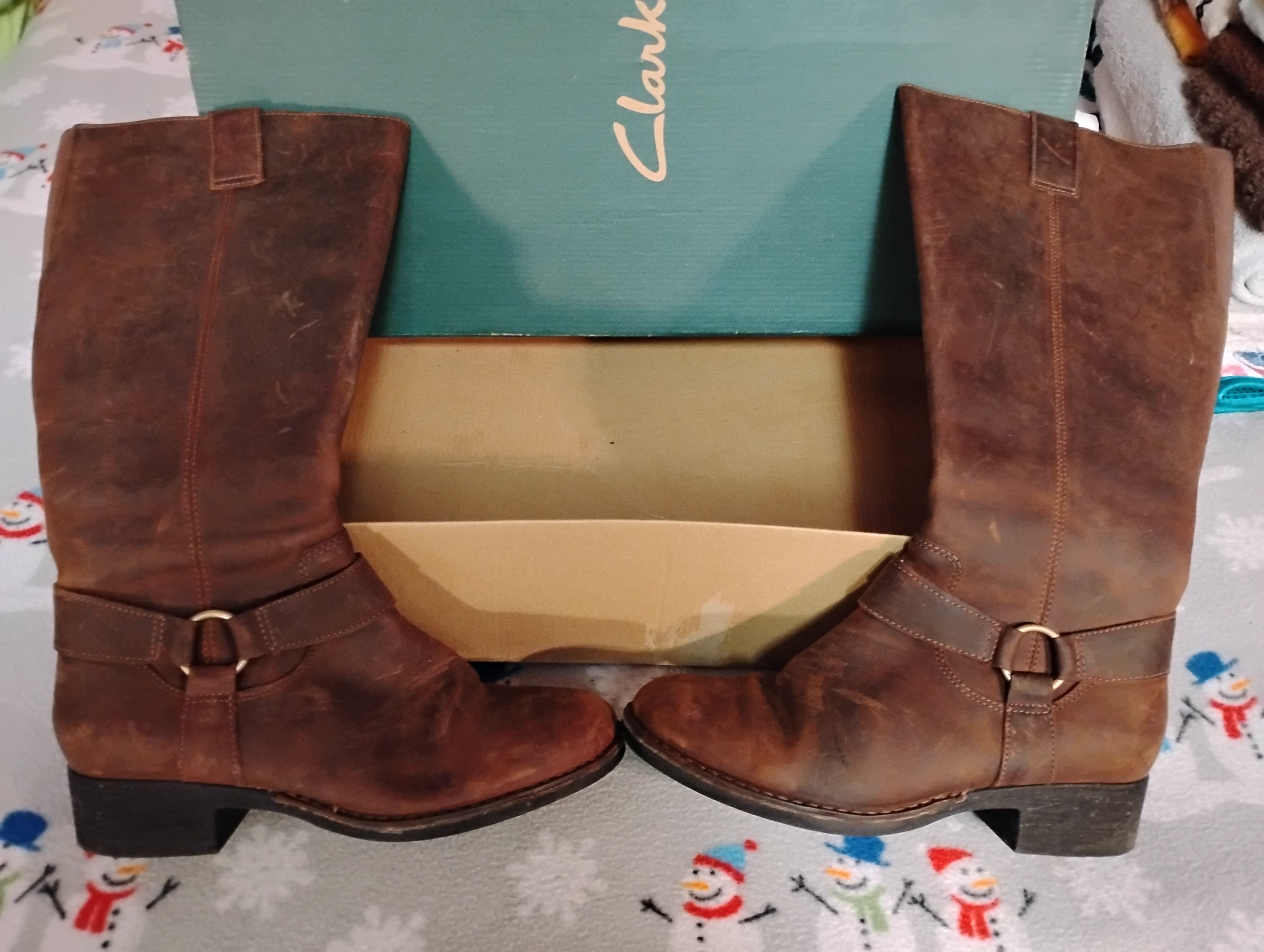 LIKE NEW women's 8 1/2 Clark tall dress boots $50 firm. Call or text 315-360-7128.