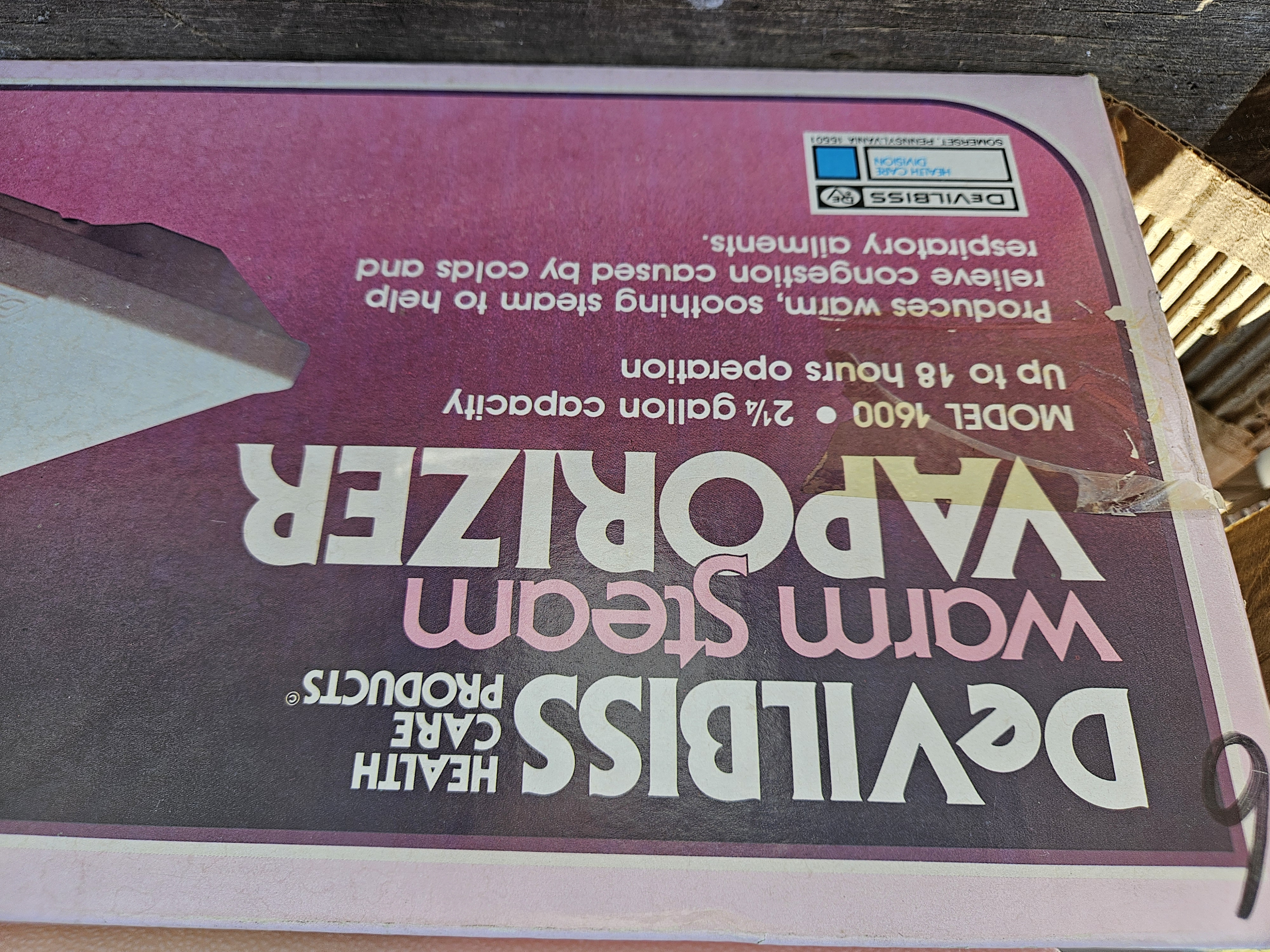 DeVilbiss electric warm steam vaporizer. With Flu and Covid season, this helps you breathe much easier. $10 Palatine Bridge. 518-673-2669